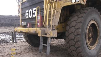Our custom Spring Swing Step has been adapted to conveyor systems, hydraulic shovels, loaders and haul trucks. We can build to suit any truck or piece of equipment.