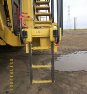 Steps are engineered to be the safest and most operator friendly boarding system in North America. Since 1994 the Spring Swing step (Canadian Patent No.2,178,023 and US No.9,725,041B2) has been used on large mining equipment to safely mount and dismount equipment operators. Steps have been engineered for strength and durability.